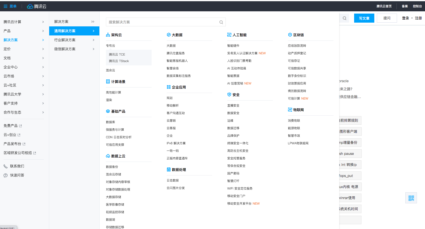 在搜索云供应链的时候,竟然发现了腾讯云,点进去看看给人震惊了,真是无所不包。